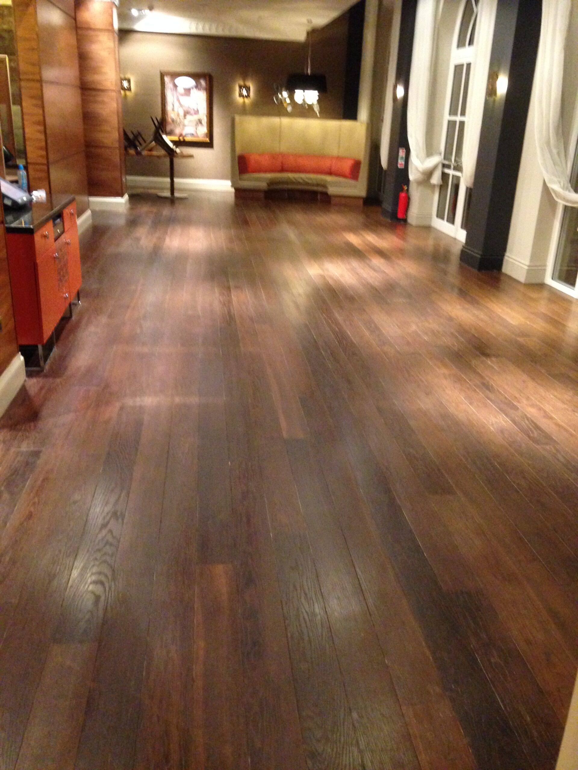 This was a large hotel restaurant floor with broadleaf wood product finish. Carried out overnight so as to not cause any inconvenience to their busy timetable.